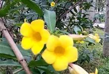 黄蝉属,夹竹桃科,约15种,分布于热带美洲,中国引入栽培的有黄蝉A. neriifolia Hook. 和软枝黄蝉 A. cathartica L. 2种,广州极常见,供观赏。直立或藤状灌木;叶生或…全部>>