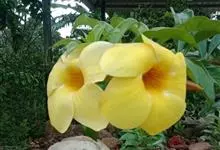 黄蝉属,夹竹桃科,约15种,分布于热带美洲,中国引入栽培的有黄蝉A. neriifolia Hook. 和软枝黄蝉 A. cathartica L. 2种,广州极常见,供观赏。直立或藤状灌木;叶生或…全部>>
