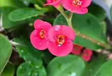 虎刺梅:别称铁海棠,是蔓生灌木植物。茎多分枝,长60-100厘米,直径5-10毫米,具纵棱,密生硬而尖的锥状刺,刺长1-1.5厘米,直径0.5-1.0 毫米,常呈3-5列排列于棱脊上,呈旋转。叶互生…全部>>