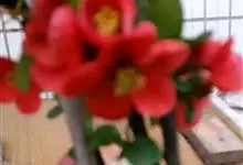 贴梗海棠Nakai)是蔷薇科、木瓜海棠属植物。落叶灌木,高达2米,枝条直立开展,有刺。叶片卵形至椭圆形,稀长椭圆形,长3-9厘米,宽1.5-5厘米。花先叶开放,3-5朵簇生于二年生老枝上。…全部>>