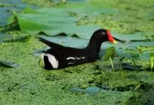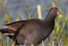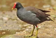 黑水鸡:是鹤形目、秧鸡科的鸟类,共有12个亚种。中型涉禽,体长24-35厘米。嘴长度适中,鼻孔狭长;头具额甲,后缘圆钝;嘴和额甲色彩鲜艳。翅圆形,第2枚初级飞羽最长,或第2枚和第3枚初级飞羽等长,…全部>>