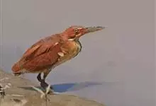 栗苇鳽是一种中型涉禽。体长30-38厘米。外形和紫背苇鳽相似。雄鸟上体从头顶至尾包括两翅飞羽和覆羽全为同一的栗红色,下体淡红褐色,喉至胸有一褐色纵线,胸侧缀有黑白两色斑点,野外特征极为明显,容易辨认。…全部>>
