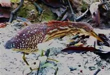 栗苇鳽是一种中型涉禽。体长30-38厘米。外形和紫背苇鳽相似。雄鸟上体从头顶至尾包括两翅飞羽和覆羽全为同一的栗红色,下体淡红褐色,喉至胸有一褐色纵线,胸侧缀有黑白两色斑点,野外特征极为明显,容易辨认。…全部>>