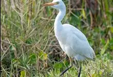 牛背鹭:体较肥胖,喙和颈较短粗。夏羽大都白色;头和颈橙黄色,前颈基部和背中央具羽枝分散成发状的橙黄色长形饰羽;前颈饰羽长达胸部,背部饰羽向后长达尾部,尾和其余体羽白色。冬羽通体全白色,个别头顶缀有黄色,…全部>>