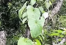 黄独,是薯蓣科薯蓣属草本植物;块茎卵圆形或梨形,浅绿色稍带红紫色,光滑无毛;叶片宽卵状心形或卵状心形,两面无毛;蒴果成熟时草黄色,无毛;种子深褐色,扁卵形;花期7-10月;果期8-11月。形状象芋头,…全部>>