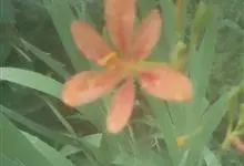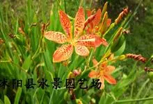 射干 Redouté)是鸢尾科射干属多年生草本植物。根状茎为不规则的块状,斜黄色或黄褐色;花橙红色,散生紫褐色的斑点;花药呈条形;子房下位,倒卵形;蒴果倒卵形或长椭圆形;种子圆球形,黑紫色,有光泽。…全部>>