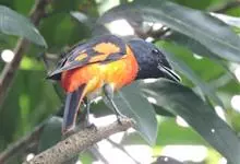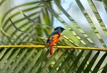 灰喉山椒鸟:共有8个亚种。体长18-22厘米。雄鸟头部和背亮黑色,腰、尾上覆羽和下体朱红色,翅黑色具一大一小的两道朱红色翼斑。中央尾羽黑色,外侧尾羽基部黑色,端部红色。…全部>>