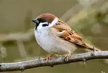 家麻雀:共有13个亚种。是小型鸟类,体长14-16厘米。背栗红色具黑色纵纹,两侧具皮黄色纵纹;颏、喉和上胸黑色,脸颊白色,其余下体白色,翅上具白色带斑。雄鸟与树麻雀的区别在顶冠及尾上覆羽灰色,耳无黑…全部>>