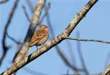 山麻雀:小型鸟类,体长13-15厘米。雄鸟上体栗红色,背中央具黑色纵纹,头棕色或淡灰白色,颏、喉黑色,其余下体灰白色或灰白色沾黄。雌鸟上体褐色具宽阔的皮黄白色眉纹,颏、喉无黑色。…全部>>