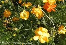 黄秋英是菊科秋英属的一年生草本植物。枝叶为对生的二回羽状复叶,裂片呈披针形;花为舌状花,有单瓣和重瓣两种,颜色多为黄、金黄、橙色,红色;瘦果棕褐色,粗糙有毛,顶端有细长喙;春播花期6-8月,…全部>>