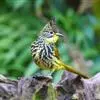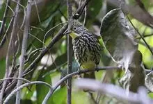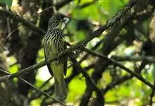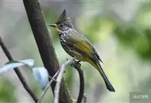 纵纹绿鹎,是鹎科鹎属的一种动物,是体型中等大小鸟类,体长20-24厘米。头绿褐色具明显的冠羽,其上具细的白色纵纹。上体橄榄绿色具细的白色纵纹。眼圈浅黄色。喉和尾和覆羽黄色,其余下体暗灰黑色具黄白色纵纹。…全部>>