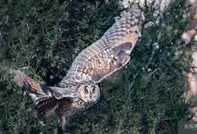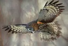 灰林鸮是鸱鸮科、林鸮属鸟类。体长约40厘米;头大而圆,没有耳羽,面盘明显,橙棕色或黑褐色;上体暗灰色,呈棕、褐斑杂状;飞羽暗褐,外侧翅上夏羽的外翈棕白色,在翅上形成显著的棕白色翅斑;下体白或皮黄色,…全部>>