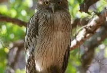 褐渔鸮,是鸱鸮科、渔鸮属的鸟类。褐渔鸮为大型鸮类,体长51-55厘米,外形和毛脚鱼鸮相似,但较棕褐色,上体有粗著黑色斑纹,下体黄白色或浅暗黄色,有粗著的黑色条纹和细的波状横斑,喉有大的白色块斑,…全部>>