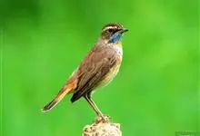 蓝点颏亦称“蓝喉歌鸲”,通称蓝靛颏儿。身体大小和麻雀相似,体长12-13厘米,体重17-18克。头部、上体主要为土褐色。眉纹白色。尾羽黑褐色,基部栗红色。颏部、喉部辉蓝色,下面有黑色横纹。下体白色。…全部>>