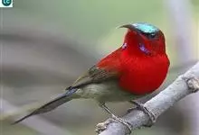 叉尾太阳鸟,雀形目太阳鸟科太阳鸟属留鸟;为小型鸟类,雄鸟头顶辉蓝绿色,上体橄榄绿色,腰明黄色,中央尾羽亮翠蓝色,羽轴针状延长,外侧尾羽黑色具白色端斑,头侧黑色,颜、喉和胸为绛红色,…全部>>