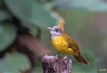 黄腹冠鹎:体长19-24厘米,是一种体型略大的褐色鹎。头顶橄榄褐色具黑褐色羽冠。白色的喉膨起,下体黄色。似白喉冠鹎但较鲜亮,上体褐色较重,腹部为鲜亮的柠檬黄色。虹膜褐色;嘴黑色;脚粉红色。…全部>>