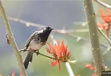 黑喉红臀鹎是雀形目鹎科鹎属鸟类,别称有黑头公、红臀鹎。头顶黑色具光泽;后颈、肩和背暗褐具灰色狭缘;腰羽几纯暗褐,尾上覆羽近白色,羽端浅灰褐色;尾羽褐黑,中央尾羽具狭窄的白色端斑,…全部>>