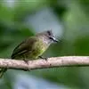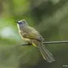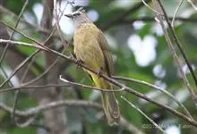 黄绿鹎,小型鸟类,体长19-22厘米。额至头顶暗褐具灰色羽缘,眼先黑色,其上面有一粗著的白纹从鼻后至眼,在黑色的头部极为醒目。上体橄榄绿褐色。颏、喉淡灰色或灰白色,胸灰褐色具橄榄黄色羽缘,…全部>>