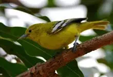 黑翅雀鹎:体重14-19克,体长11.5-16厘米。是树栖性绿色小鸟,外形与叶鹎相似,下体黄色。鸟喙直,翼长而尖,总体羽毛是绿色和黄色相结合,翼上具两道明显近白色横纹,翼近黑而羽缘白。…全部>>