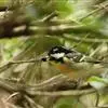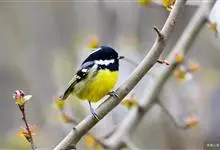 黄腹山雀是雀形目山雀科山雀属鸟类。虹膜褐色或暗褐色;嘴蓝黑色或灰蓝黑色;头、喉胸斑黑色,颊斑、颈后斑白色;上体蓝灰色,腰银白色;翼具两排白色点斑;下胸、腹鲜黄色;尾黑色,…全部>>