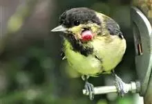 大山雀是山雀科、山雀属的中小型鸟类,体长13-15厘米,翼展23-26厘米,体重16-21克。是黑、灰及白色山雀。头及喉辉黑色,与脸侧白斑及颈背块斑成强对比;翼上具一道醒目的白色条纹,…全部>>