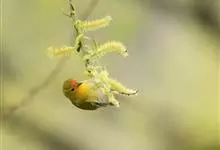 火冠雀又名火帽雀,是雀形目山雀科火冠雀属小型鸟类。体长约10厘米,雄鸟繁殖期前额鲜红色,头等及耳羽暗黄色,眉纹色浅不显著;喉部橙红色,逐渐过渡至胸部的鲜黄色;背部黄绿色,小翼羽黑色,…全部>>