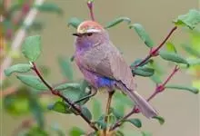 花彩雀莺:体长9-12厘米,是一种毛茸茸偏紫色的雀莺。顶冠棕色,眉纹白。尾长,羽毛松软。前额有一宽阔的眉纹淡黄色,头顶栗色或棕红色,有的具紫蓝色光泽。背灰色,腰和尾上覆羽辉紫蓝色,飞羽灰褐色。…全部>>