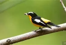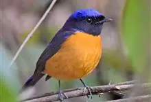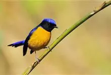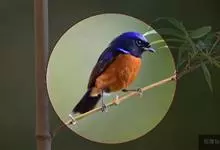 棕腹大仙鹟:体重24-28克,体长15-17厘米,是一种小型的色彩亮丽的鹟。雄鸟上体深蓝,下体棕色,脸黑,额、颈侧小块斑、翼角及腰部亮丽闪辉蓝色。与棕腹仙鹟易混淆,区别在色彩较暗。雌鸟灰褐,…全部>>