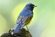 棕腹蓝仙鹟,Niltava vivida,鹟科仙鹟属的一种小型鸣禽,善在空中飞捕昆虫,中等体型18厘米,上体蓝,下体棕色,具黑色眼罩,胸橘黄渐变成臀部的皮黄色。国内分布于四川、云南、西藏和台湾等地。…全部>>