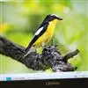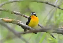 白眉姬鹟是小型鸟类,体长11-14厘米。雄鸟上体大部黑色,眉纹白色,在黑色的头上极为醒目。腰鲜黄色,两翅和尾黑色,翅上具白斑。下体鲜黄色。雌鸟上体大部橄榄绿色。腰鲜黄色,翅上亦具白斑。下体淡黄绿色。…全部>>