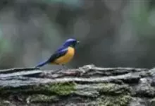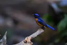 棕腹大仙鹟:体重24-28克,体长15-17厘米,是一种小型的色彩亮丽的鹟。雄鸟上体深蓝,下体棕色,脸黑,额、颈侧小块斑、翼角及腰部亮丽闪辉蓝色。与棕腹仙鹟易混淆,区别在色彩较暗。雌鸟灰褐,…全部>>