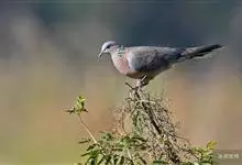 珠颈斑鸠,别名花斑鸠、珍珠鸠、花脖斑鸠、鸪鹪,是鸠鸽科副斑鸠属鸟类。体型中等,体长27~34cm,体重120~205g,雌鸟和雄鸟羽色相似,但雌鸟不如雄鸟羽色亮泽。珠颈斑鸠前额至头顶羽色稍淡,…全部>>