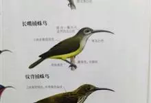 雀形目、太阳鸟科、太阳鸟属鸟类的通称。体型纤细,嘴细长而下弯,嘴缘先端具细小的锯齿;雄鸟中央尾羽特别长;两性异色。世界共有14种,分布于亚洲南部、菲律宾群岛和印度尼西亚。中国有6种。…全部>>