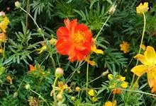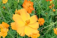 黄秋英是菊科秋英属的一年生草本植物。枝叶为对生的二回羽状复叶,裂片呈披针形;花为舌状花,有单瓣和重瓣两种,颜色多为黄、金黄、橙色,红色;瘦果棕褐色,粗糙有毛,顶端有细长喙;春播花期6-8月,…全部>>
