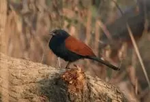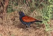 褐翅鸦鹃,是鹃形目鸦鹃科鸦鹃属的鸟类。褐翅鸦鹃的身体为黑色;头颈和胸带蓝紫色金属光泽并具黑亮的羽干纹,下胸至腹部泛金属绿光泽;两翼和肩部为棕栗色,外侧飞羽具暗色羽端,尾羽闪铜绿色光泽;虹膜赤红色,…全部>>