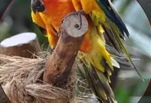 太阳锥尾鹦鹉是典型的攀禽,鸟喙强劲有力,喙钩曲,上颌具有可活动关节,喙基部具有腊膜。肌肉质舌厚。脚短,强大,对趾型,两趾向前两趾向后,适合抓握和攀援生活。鹦鹉羽毛鸟体大部分为金黄色,头顶、脸颊两侧、…全部>>