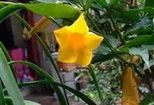 软枝黄蝉,夹竹桃科黄蝉属植物。藤状灌木;长达4米,具乳汁;叶对生或3—5轮生,倒卵形、窄倒卵形或长圆形。花序梗短,花长7—14厘米,花冠黄色,花冠筒长4—8厘米,下部圆筒形,上部钟状,…全部>>