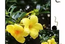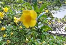 大花软枝黄蝉是软枝黄蝉的一个变种,夹竹桃科黄蝉属植物。藤状灌木,长达4米,枝条软弯垂,具白色乳汁。叶纸质,椭圆形、卵圆形或倒卵形,花序着花4-5朵,花冠比原变种大形,橙黄色,花冠喉部具5个发亮的斑点…全部>>