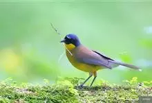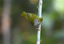 白腹凤鹛是绿鹃科、绿凤鹛属的小型鸟类,体长10-12厘米。上体从头到尾黄绿色,有短的羽冠,头顶微具黑色羽轴纹;眼先、眼周,耳羽和下体灰白色,尾下覆羽黄色。虹膜褐色或红褐色,上嘴浅褐色或肉褐色,…全部>>