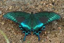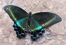 绿带翠凤蝶,又名深山凤蝶,为凤蝶科凤蝶属下的一种。分布于韩国、日本、中国台湾、中国大陆等地。翅黑色,满布金绿色鳞片。前翅亚缘具黄绿色横带纹。后翅外缘有6个略呈新月形的红斑,…全部>>