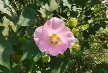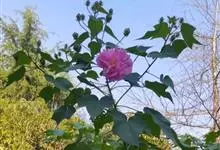 海滨木槿是锦葵科木槿属植物,落叶小乔木,株高3-5米,胸径20厘米,扁球形树冠,枝叶繁盛。厚纸质单叶互生,扁圆形、倒卵形或宽倒卵形,先端钝近平,具短突尖,基部圆形或浅心形,叶缘中上部具细圆齿,…全部>>