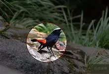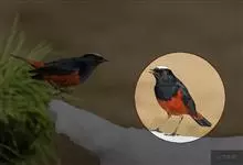 红头咬鹃: 体大,体长约33厘米,体重75-110克。头、颈暗绯红色;背、肩锈褐色。两翅黑色,翅上覆羽和内侧飞羽密被白色细虫蠹斑纹,初级飞羽黑色,外侧具白色羽缘;腰和尾上覆羽较多锈色。中央尾羽深栗色,…全部>>