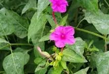 即紫茉莉,英文名:Four-o'clock,Marvel of Peru,为紫茉莉科、紫茉莉属多年生草本植物,一年生栽培。株高50~80cm。根粗壮,茎多分枝而散生。叶对生,卵形或心脏形。花数朵簇生…全部>>