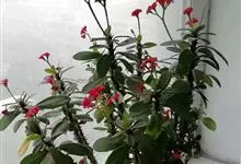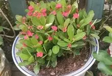 虎刺梅:别称铁海棠,是蔓生灌木植物。茎多分枝,长60-100厘米,直径5-10毫米,具纵棱,密生硬而尖的锥状刺,刺长1-1.5厘米,直径0.5-1.0 毫米,常呈3-5列排列于棱脊上,呈旋转。叶互生…全部>>