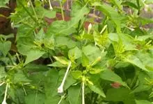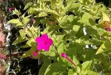 即紫茉莉,英文名:Four-o'clock,Marvel of Peru,为紫茉莉科、紫茉莉属多年生草本植物,一年生栽培。株高50~80cm。根粗壮,茎多分枝而散生。叶对生,卵形或心脏形。花数朵簇生…全部>>