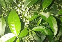 夜香树是茄科、夜香树属直立或近攀援状灌木。枝条细长而下垂。叶有短柄,叶片矩圆状卵形或矩圆状披针形,全缘,顶端渐尖,基部近圆形或宽楔形,两面秃净而发亮,有6-7对侧脉。伞房式聚伞花序,腋生或顶生,…全部>>