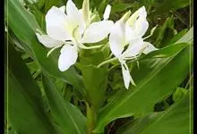 姜花又名野姜花。是姜科姜花属的多年生草本植物,茎高1-2米;叶片长圆状披针形或披针形,叶面光滑,叶背被短柔毛;穗状花序顶生,椭圆形,花芬芳,白色;蒴果卵状三棱形,微黄绿色;种子鲜红色,具橘红色的假种皮。…全部>>