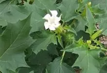 白花曼陀罗是白花曼陀罗属植物,一年生草本植物,全株近于无毛。茎直立,圆柱形,高30~100cm,基部木质化,上部呈义状分枝。叶互生,上部的叶近于对生;叶柄长2~6cm,…全部>>