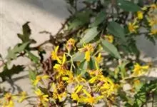 千里光是菊科千里光属多年生攀援草本植物。千里光的茎呈细圆柱形,整体为之字形,分枝多,表面灰绿色或黄棕色,有灰白色柔毛;叶子为长三角形,有细小的裂缝或羽毛状浅裂,叶柄有少量的柔毛;花瓣呈长椭圆形,黄色,…全部>>