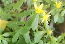 凹叶景天是景天科景天属多年生草本植物。茎细弱,高10-15厘米;叶对生,匙状倒卵形或宽卵形,先端圆微缺,基部渐窄有短距;花序聚伞状顶生,多花,萼片披针形或窄长圆形,先端钝,基部有短距,花瓣为黄色,…全部>>